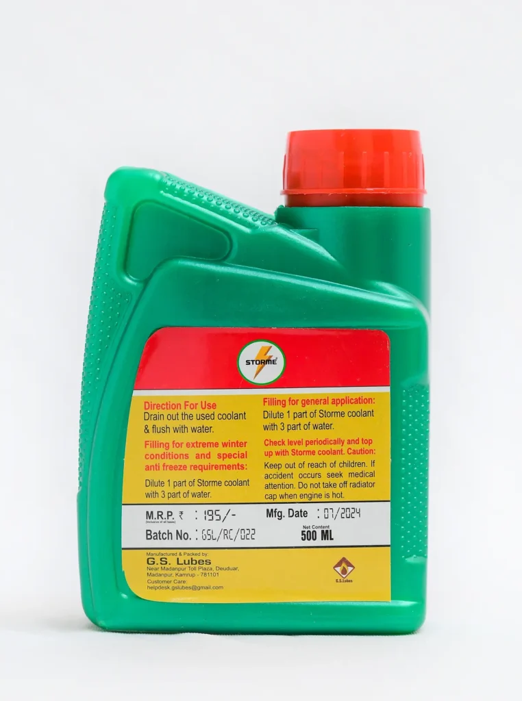 Storme Radiator Red Coolant coolant has anti-rust and anti-corrosive properties. It is ideal for all weather condition as it keeps engine cool in extreme heat and retains liquid form even in extreme cold. It lubricates the water pump and protects the engine from corrosive effects of water